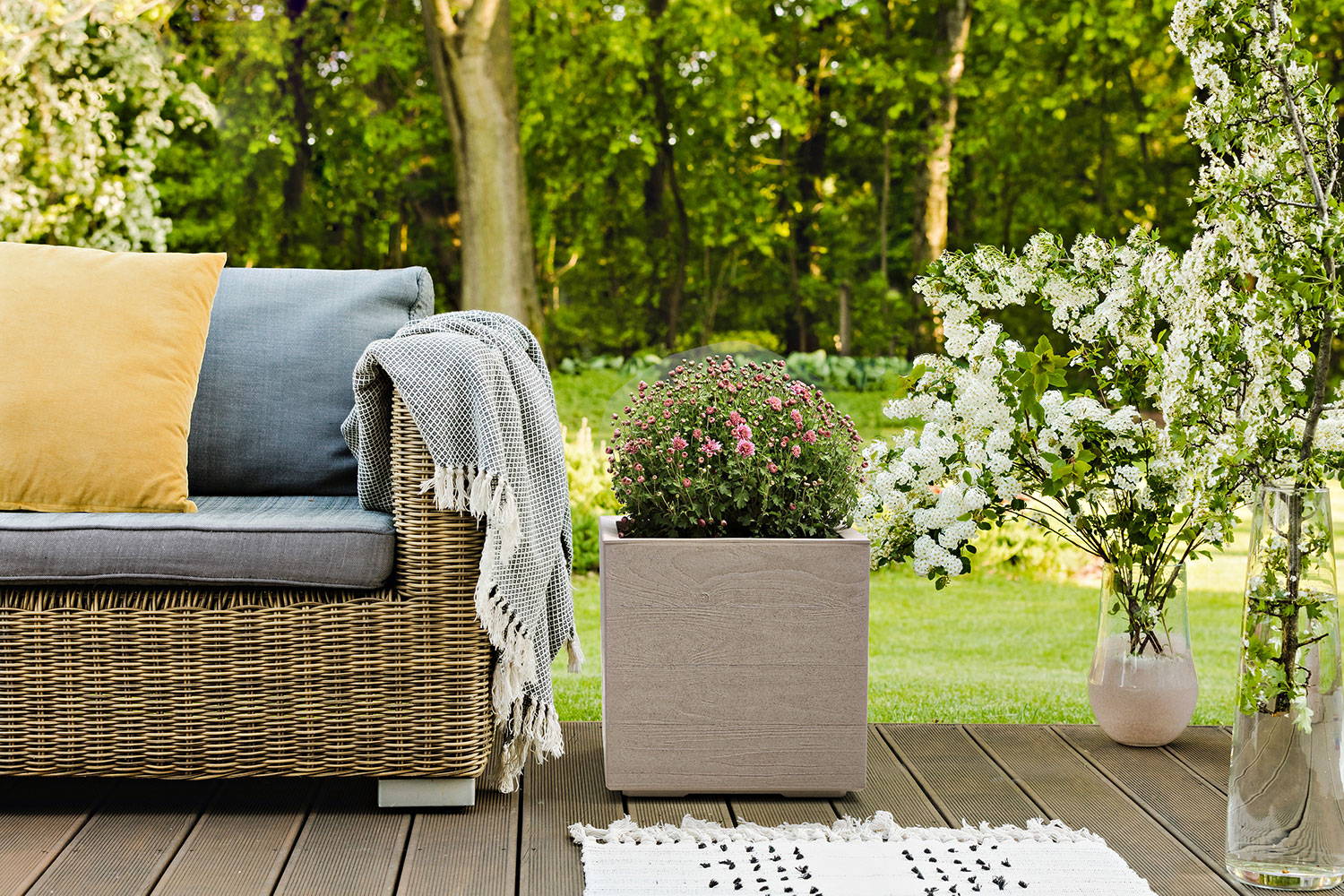 Na balkon lub taras koniecznie polecamy trawy pampasowe. Te bujne byliny mają wiele odmian, które różnią się przede wszystkim kolorem kwitnienia, np. „White Feather” to trawa o bujnych, kremowych kwiatach, a Rose Pluim Cortaderia kwitnie na jasno różowo. Trawy mają ten plus, że potrafią dorosnąć do 2, nawet 3 metrów – będą zatem naturalną zasłoną przed światem!